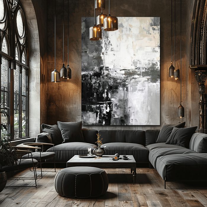 Crafted using museum-quality Giclée printing on premium canvas, Monochrome Metropolis ensures every intense stroke, subtle gradient, and rich textural detail of the original artwork is meticulously preserved. This advanced technique guarantees exceptional clarity, enduring vibrancy, and a tactile richness that elevates this wall art beyond mere decoration to a true investment in luxury and artistic expression. Allow Monochrome Metropolis to resonate within your home, offering a dynamic and elegant touch to your collection of fine wall art.