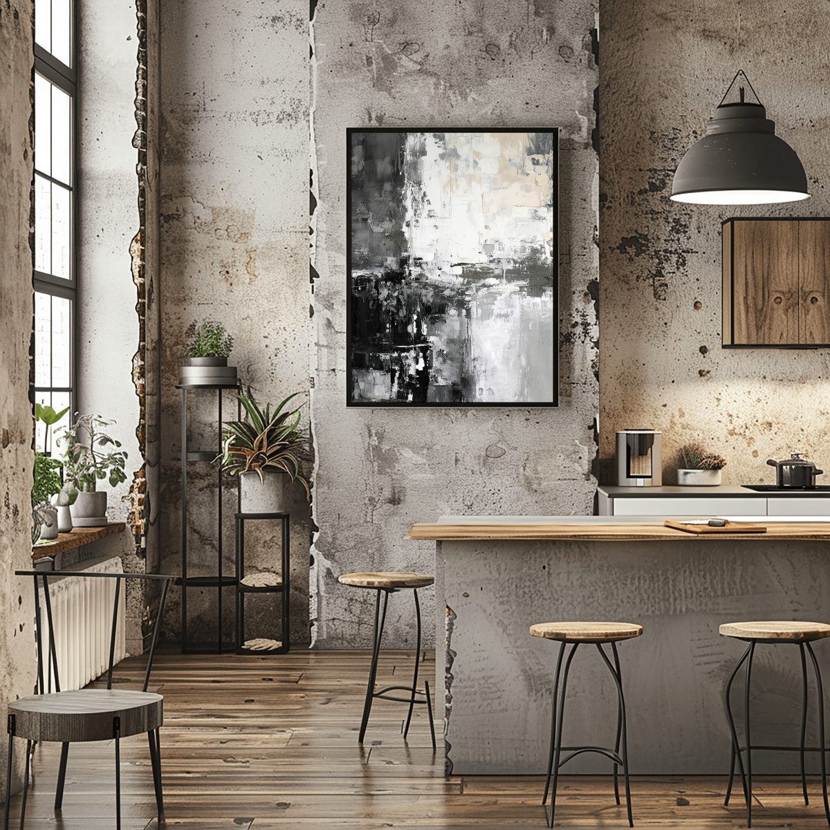 Command attention with Monochrome Metropolis, an Abstract Canvas Wall Art that captures the dynamic energy and stark beauty of urban architecture through dramatic textural contrasts of black, white, and grey.
